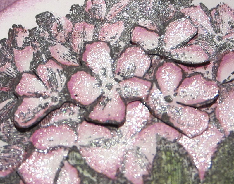 As you can see I added some of my lovely shimmer paints to the flower as well as cutting out a few of the flowers to pop up and give it a little 3D feel!